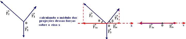 Considere as forças , e concorrentes num ponto 0 e coplanares.