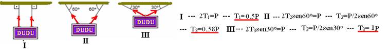 Se você pendurar um quadro na parede por meio de dois fios, quanto menor for o ângulo formado com o teto, ou o suporte, maior será a força de tração (tensão) no fio.